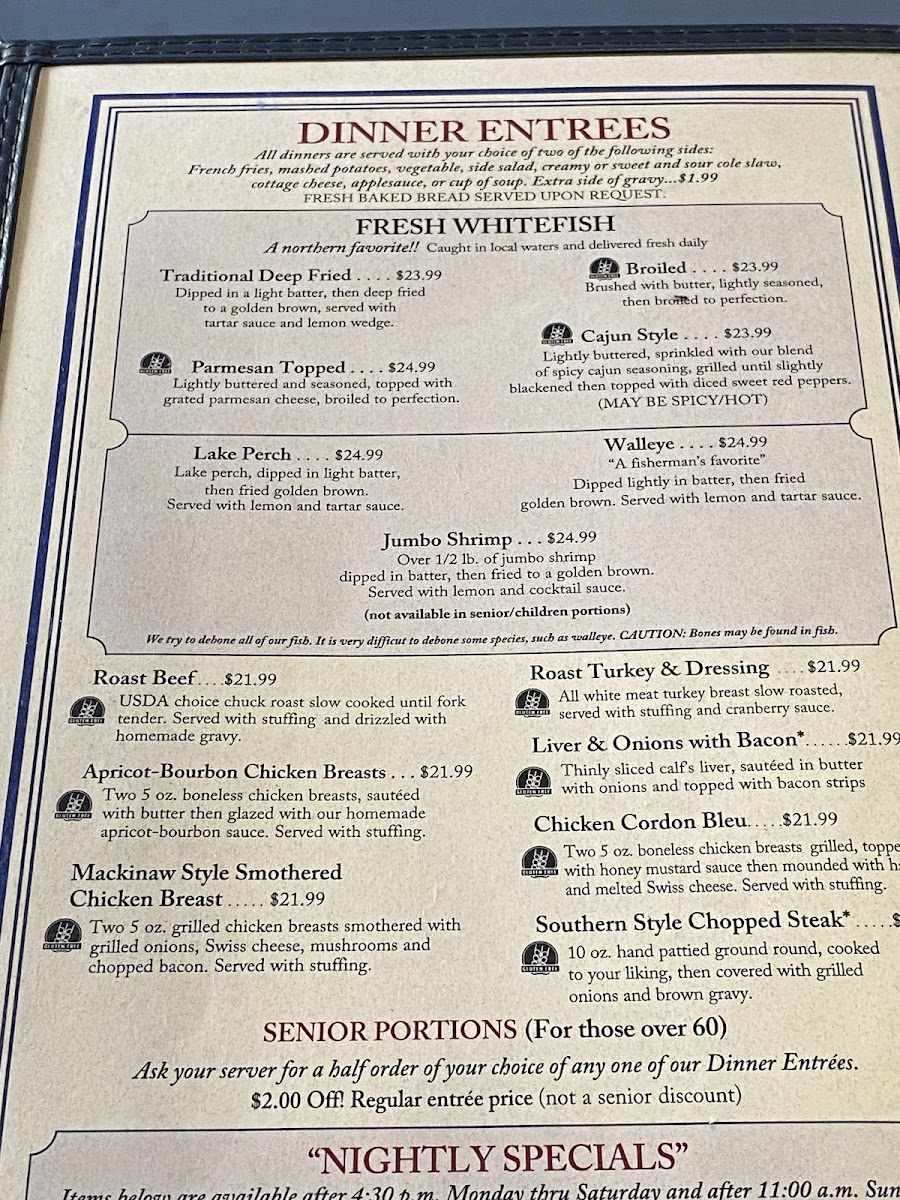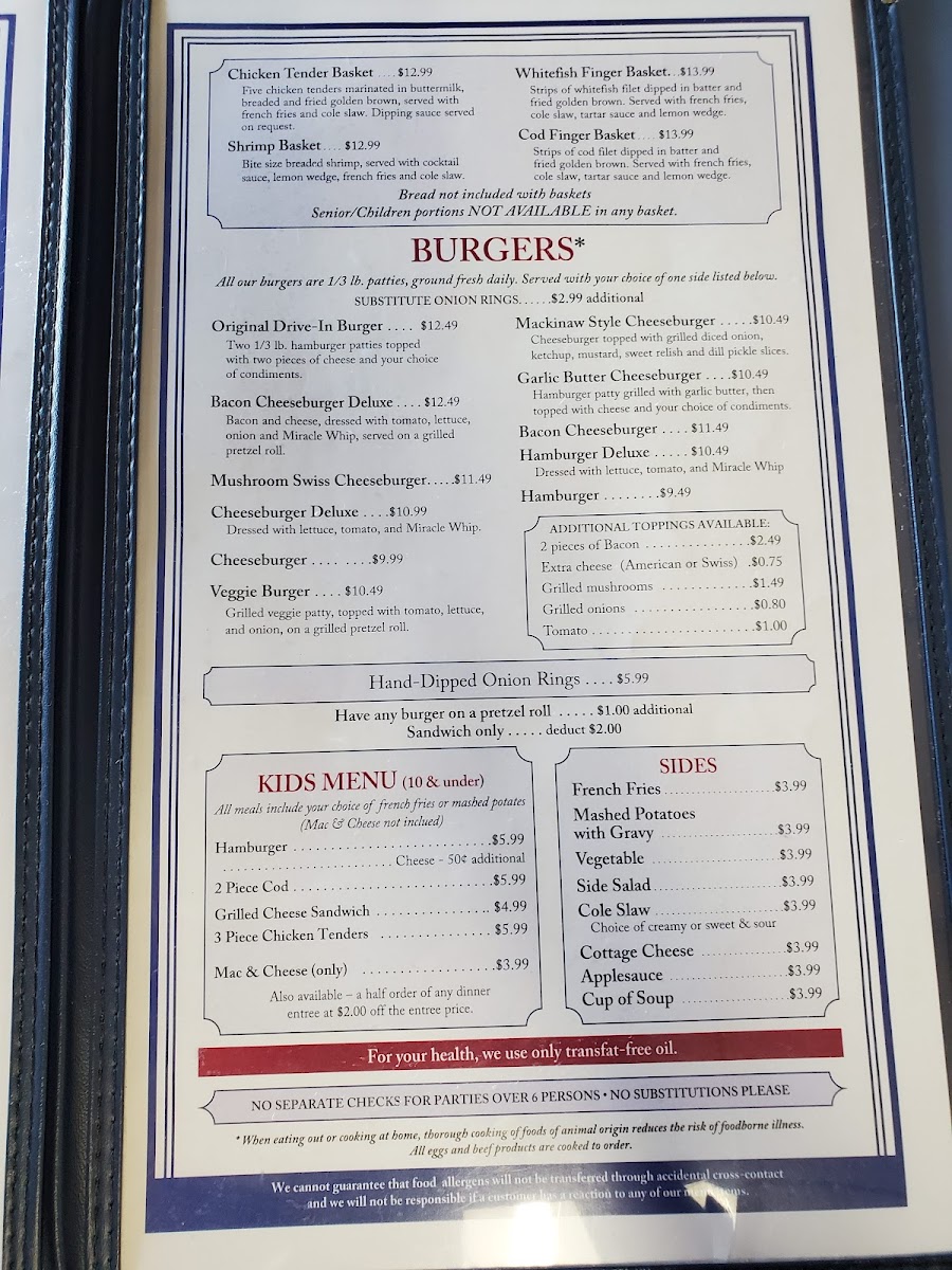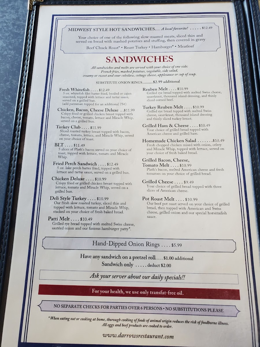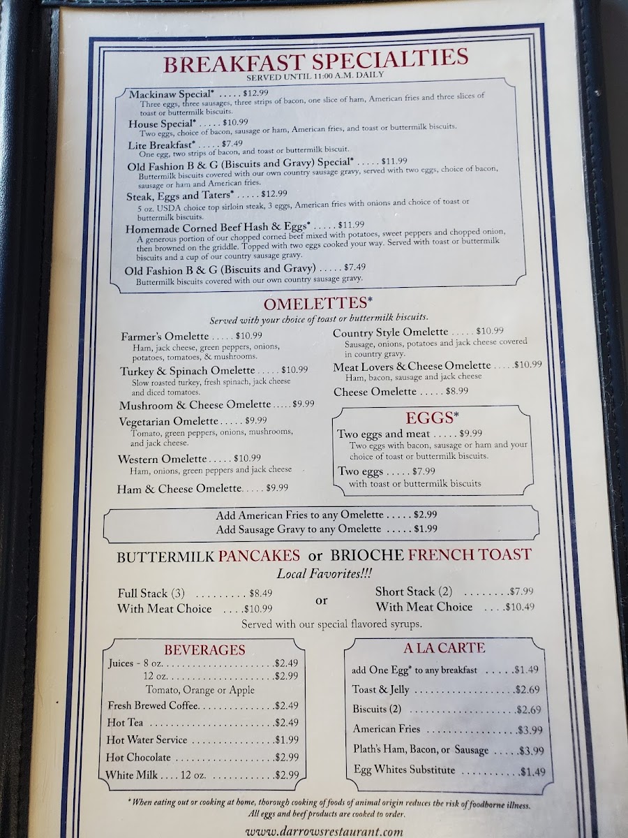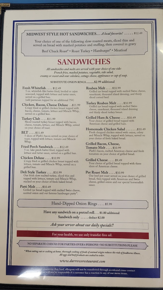Welcome to Darrow's Family Restaurant, located in the heart of Mackinaw City. This family-friendly eatery promises a delightful dining experience with an inviting atmosphere and quick service. Their menu features daily delights like the comforting cream of broccoli soup on Wednesdays and the rich cream of potato soup on Fridays. Burgers are a must-try, with the classic hamburger being a crowd favorite.